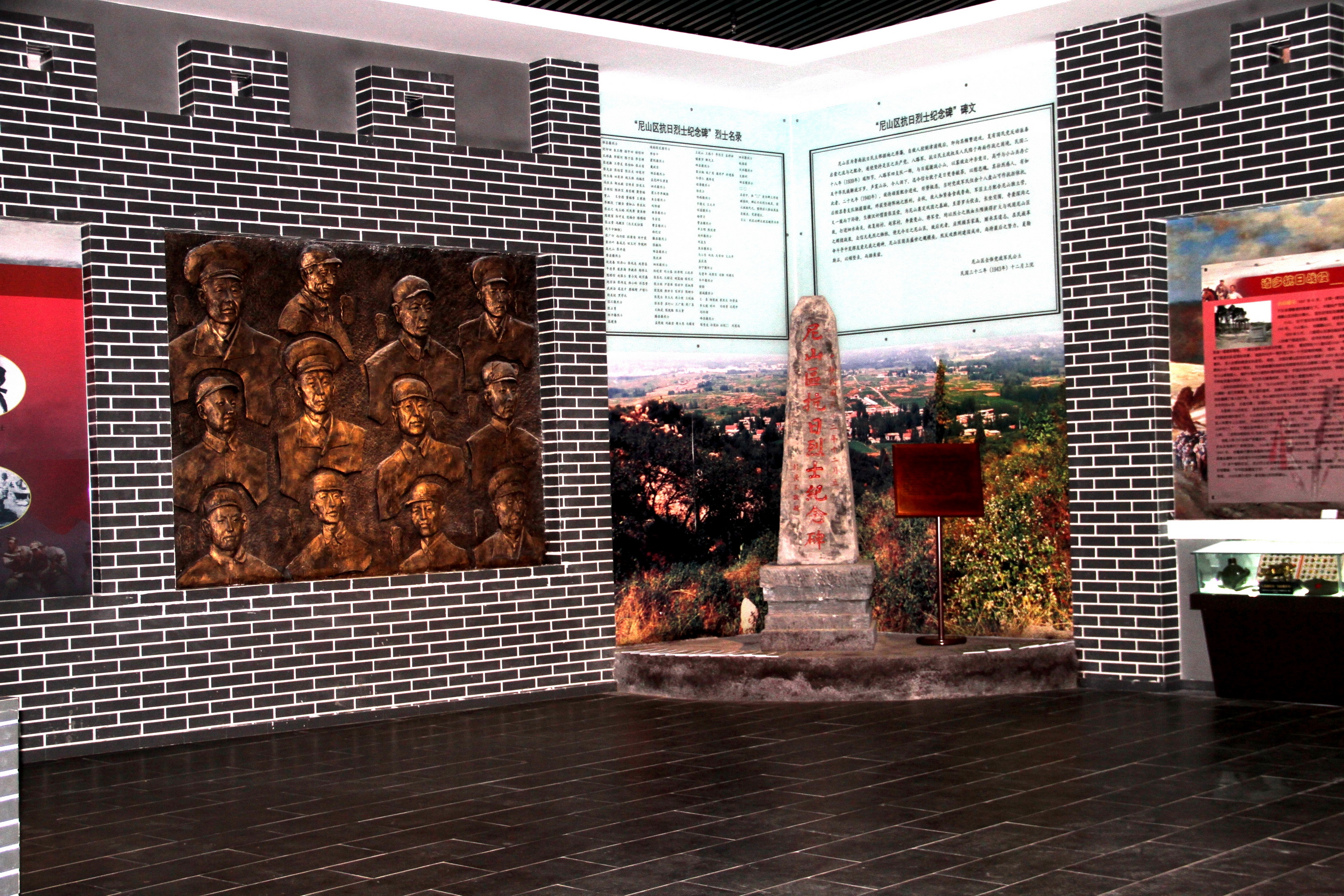 尼山区红色教育基地由尼山区抗日烈士纪念碑、尼山区抗日纪念馆、尼山区抗日遗址复原工程等组成。其中尼山区抗日纪念馆有序厅、党建厅、战事厅、红色记忆厅、胜利厅、多媒厅等,尼山区抗日遗址复原工程是对抗日战争遗迹进行恢复原貌,由抗日小学、后方医院、八路军兵营、防空洞、民居等组成,都是爱国主义教育重要场所。