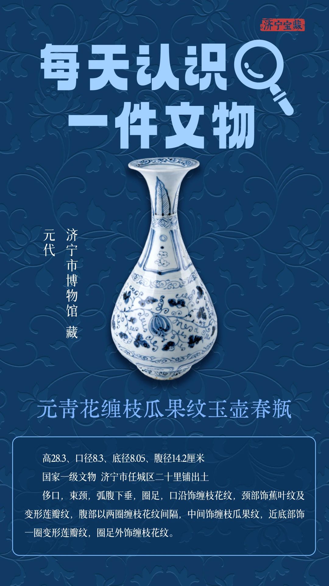 【济宁宝藏】元青花缠枝瓜果纹玉壶春瓶