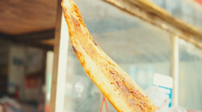 点击播放视频 梁山鞋底烧饼,光是听到这个名字,就仿佛能感受到它那独特的魅力。它形如鞋底,长长的、扁扁的,外表金黄酥脆,宛如秋日里的一抹暖阳,散发着诱人的光泽。