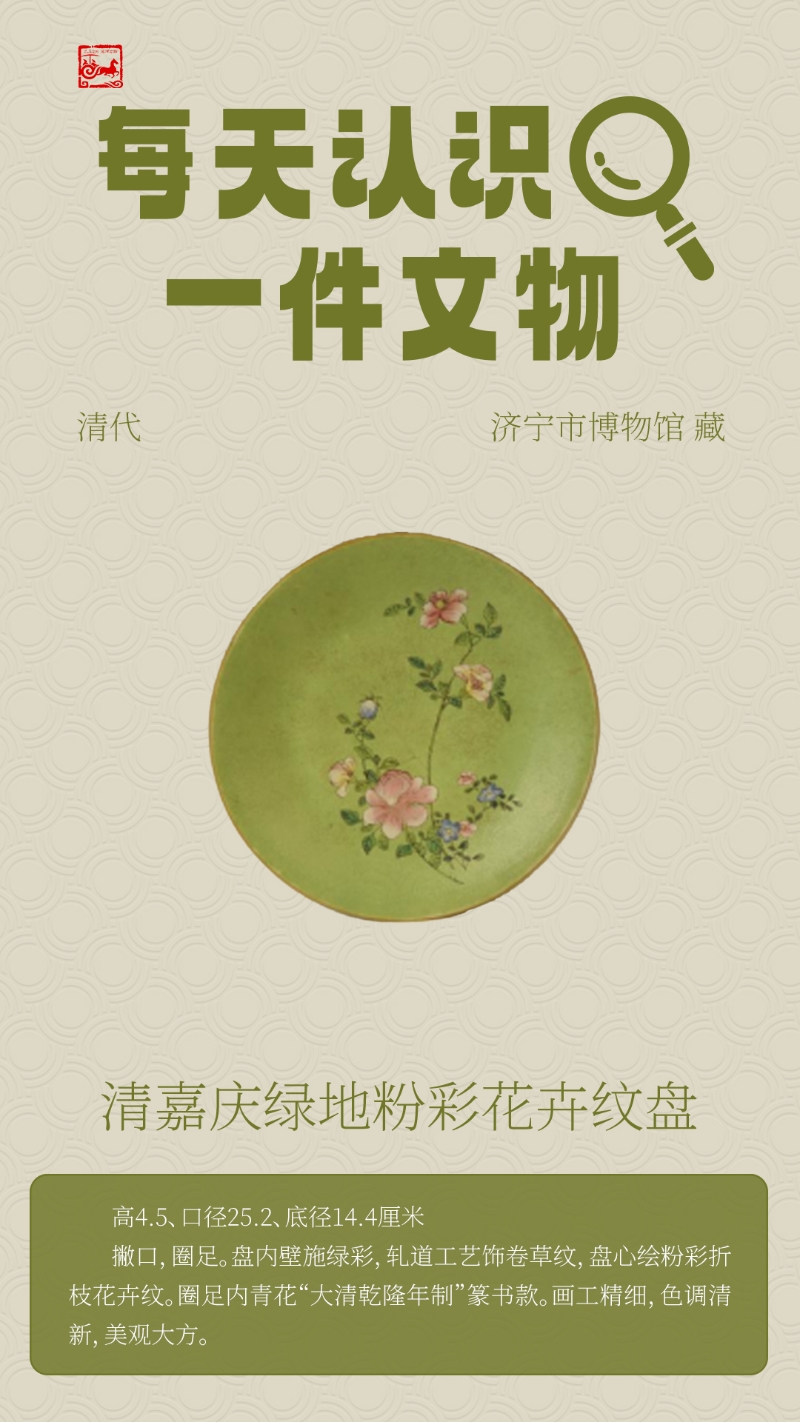 【济宁宝藏】清嘉庆绿地粉彩花卉纹盘