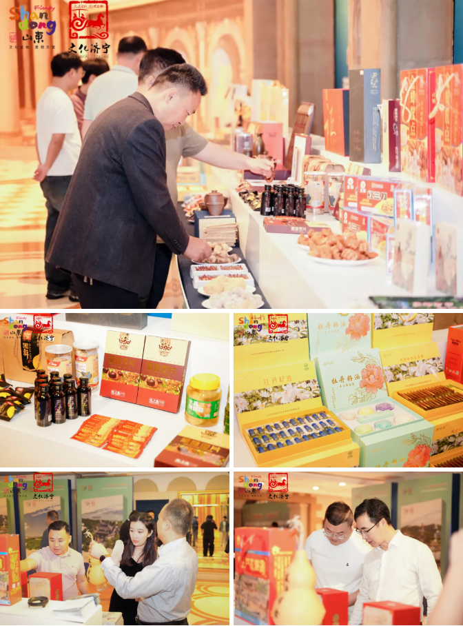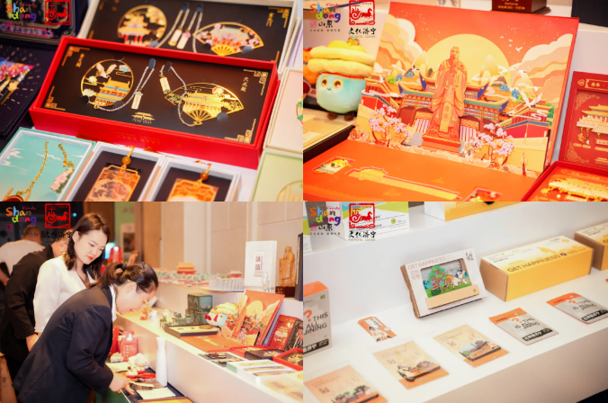 文创展区绽放济宁韵味 会场外精心布置的“济宁文旅文创商品展”成为本次推介会的一大亮点,来自济宁的近百件非遗产品、文博衍生品、地方特色物产等精选展品构筑了一个可触、可感、可品的济宁文化体验空间,吸引嘉宾频频驻足,有效提升了济宁文旅品牌的感知度和亲和力。 儒家文创精品荟萃:集中展示了曲阜三孔文旅开发的系列精品,从承载着“金榜题名”美好祝愿的笔记本套盒,到精巧别致的小状元书签、大成殿挂坠冰箱贴;从蕴含千年智慧的《线装论语释译》,到趣味盎然的商周十供盲盒、孔门72贤扑克牌,每一件都将传统文化与现代审美完美融合。豆神动漫带来的“孔爷爷”系列IP产品,包括PVC盲盒、木雕及《走近孔子》立体书等,以青春语态对话圣贤,令人耳目一新。