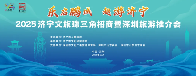 10月28日上午, “乐启鹏城 趣游济宁”——2025济宁文旅珠三角招商暨深圳旅游推介会在深圳市成功举办,正式启动济深文旅推广季。本次活动由济宁市人民政府主办、济宁市文化和旅游局承办,旨在深化济宁市与粤港澳大湾区的文旅交流,全面推介“孔孟之乡、运河之都”优质资源,推动客源互送、项目合作与产业共赢。