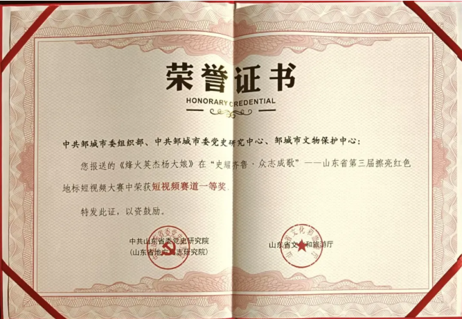 在省委宣传部、省文化和旅游厅等部门联合举办的“红动齐鲁”山东省第七届红色故事讲解大赛中,兖州区王娴娴深情讲述《三十六烈士井墓》的故事,感人至深,获得金牌志愿讲解员称号。