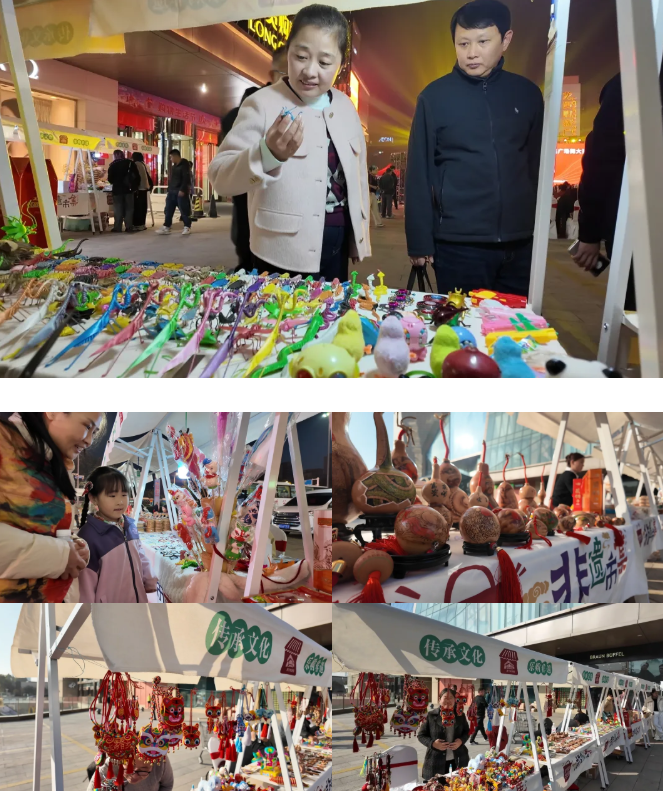 活动现场不仅有精彩的舞蹈比拼,更特别增设非遗市集专区,让文化氛围愈发浓厚。市集汇集了济宁本地多家省、市非遗项目,既有草编、刺绣、钩织、葫芦烙画、糖画面塑等传统手作展示,非遗传承人现场演示技艺;也有孔府煎饼、老刘馓子、汶上芦花鸡、熏鱼等非遗美食摊位,香气四溢吸引市民驻足品尝。不少观众在观看比赛间隙逛市集、赏非遗,在感受舞蹈活力的同时,沉浸式触摸济宁本土文化脉络,实现“文化盛宴”与“非遗传承”的双向赋能。