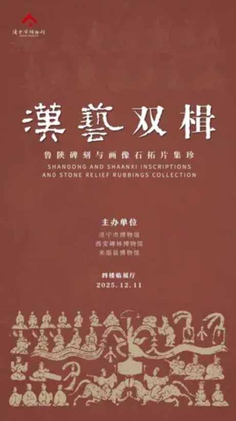 为弘扬中华优秀传统文化,深化馆际交流协作,济宁市博物馆联合山东博物馆等11家文博单位共同推出《礼运和合 文物华光——济宁地区珍宝特展》。展览汇聚济宁地区珍贵文物,集中呈现其璀璨厚重、渊源流长的历史文化积淀。 展览分为“窑火神工”“吉金流光”“玉史共辉”“金石千秋”“百宝纷呈”五大单元,遴选展品百余件(套),其中国家一级文物70件,占比超70%,云集春秋吴王夫差青铜剑、元代青花云龙缠枝莲纹罐、金镶灵芝纹白玉带、洪武通宝金币等众多国宝级文物,多数展品将首次跨馆“携手亮相”,让观众一次性饱览济宁文物的璀璨风华。 展览时间:2025年12月11日—2026年3月4日 展览地点:济宁市博物馆(文化中心馆)二楼临展厅 汉艺双楫——鲁陕碑刻与画像石拓片集珍