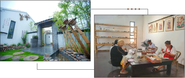 西平镇六营村文创中心位于微山县西平镇南部,紧邻微山湖。文创中心由三处废弃民房改造而成,占地面积约400平方米,中心在保留原有建筑结构的基础上,融入中国古典院落风格,白墙黑瓦、绿植掩映,营造出兼具传统韵味与现代功能的公共文化空间。中心内设有时光小院、非遗工坊、青卓之家、魏留勤工作室、红色展厅、思源井、打卡墙等多个功能区,是集文化展示、非遗传承、青年培养、红色教育、休闲体验于一体复合型文化空间。