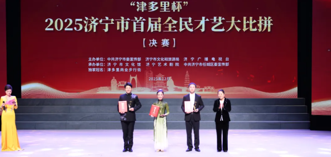 12月27日下午,济宁市文化馆群星剧场灯光璀璨、掌声雷动。由中共济宁市委宣传部、济宁市文化和旅游局、济宁广播电视台主办,济宁市文化馆、济宁艺术剧院、中共济宁市任城区委宣传部承办,津多里商业步行街独家冠名支持的“津多里杯”2025济宁市首届全民才艺大比拼年度决赛在此圆满落幕。市文化传承发展中心主任李芳,市文化和旅游局党组书记、局长王磊出席活动并为获奖选手颁奖。