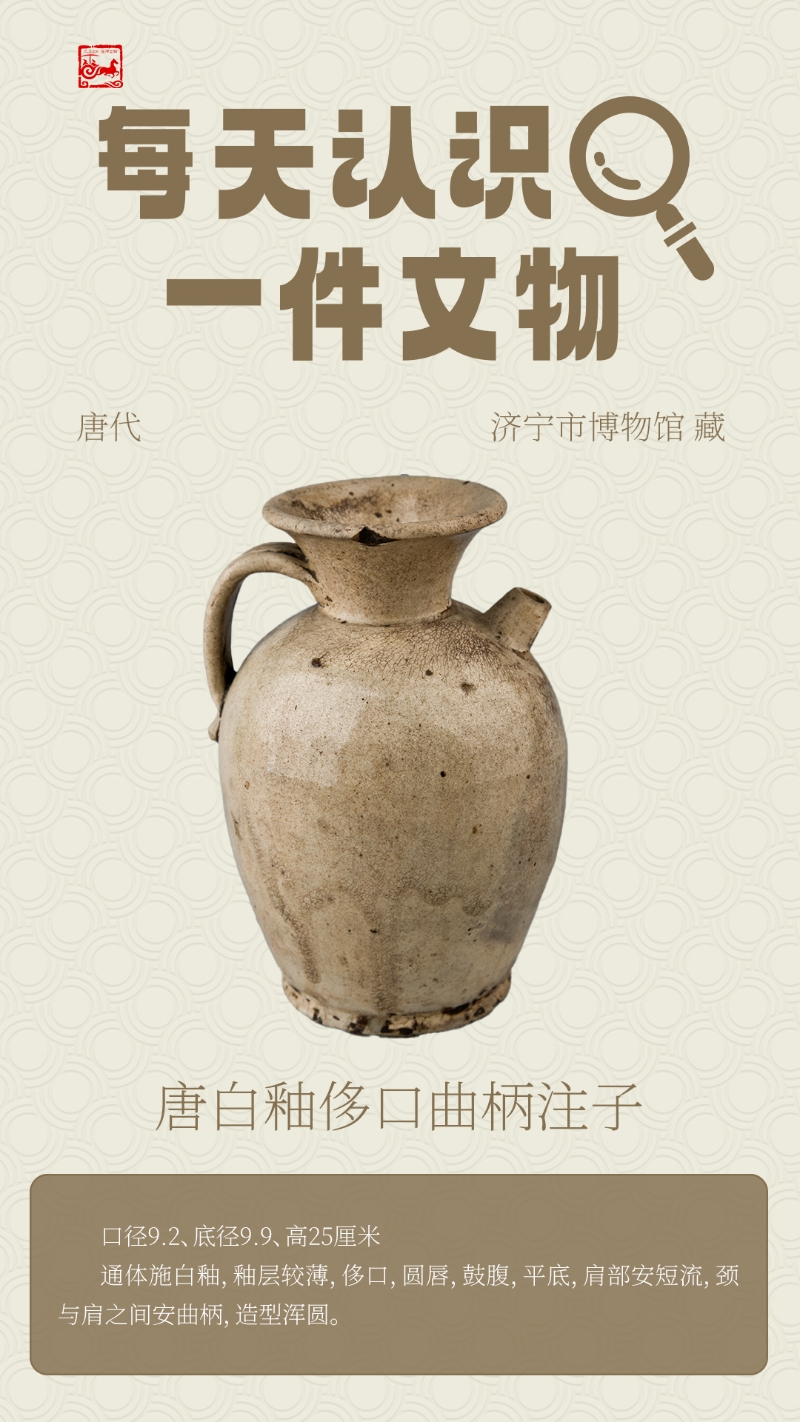 【济宁宝藏】唐白釉侈口曲柄注子