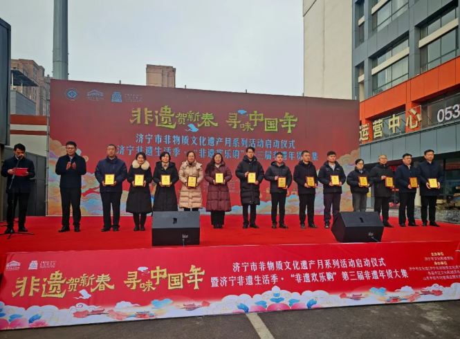 2月10日,农历腊月二十三,由市文化和旅游局主办,市文化馆(济宁市非物质文化遗产保护中心)、各县市区文化和旅游局、山东丰街市场管理运营有限公司承办的济宁市2026年非物质文化遗产月系列活动启动仪式暨济宁非遗生活季·“非遗欢乐购”第三届非遗年货大集活动在国投·麷街正式启动。市文化和旅游局副局长张为康,山东丰街市场管理运营有限公司党支部书记、董事长杨勇,各县(市、区)、功能区文化和旅游行政部门分管领导、相关科室负责人、非遗保护中心负责人和来自全市的200余名传承人参加了启动仪式。