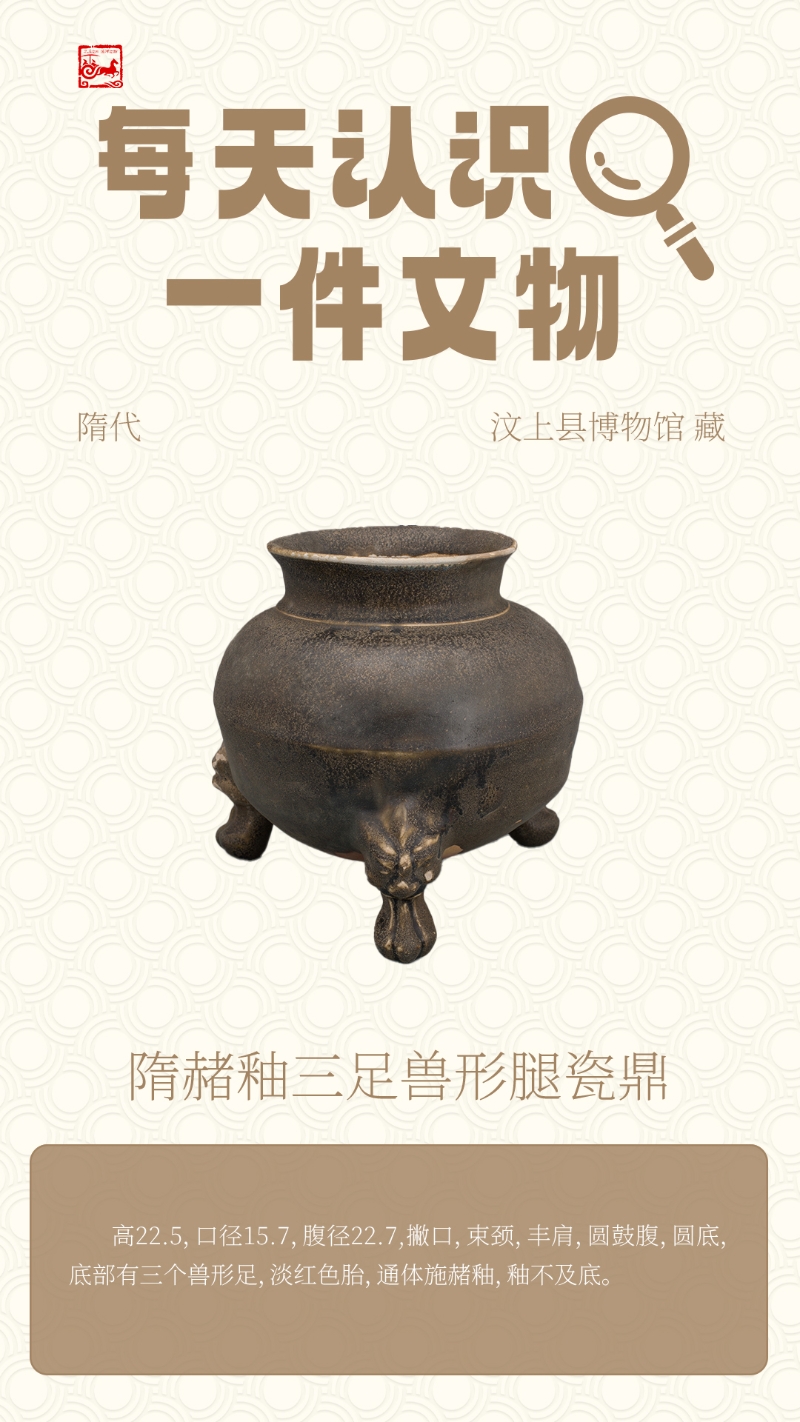 【济宁宝藏】隋赭釉三足兽形腿瓷鼎