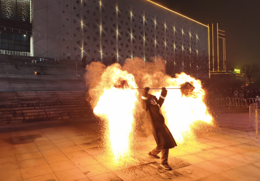 嘉祥:打铁花点亮祥城 贺年会人气高涨