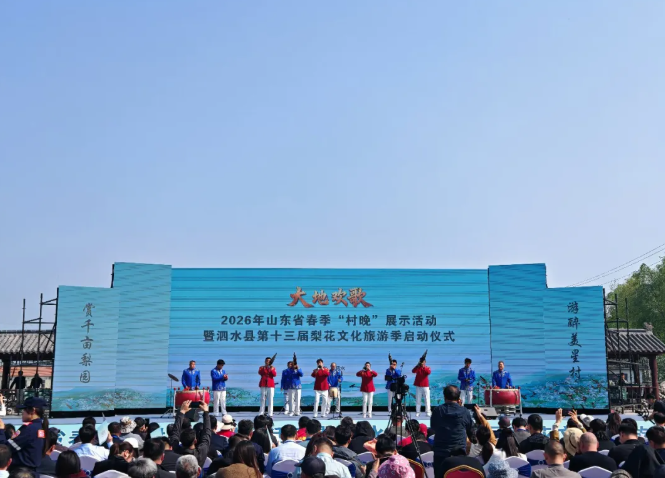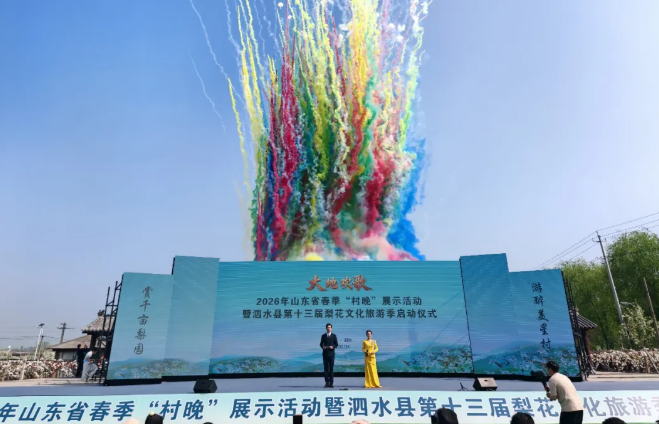 春风送暖,梨园飘香。4月3日,由山东省文化和旅游厅、山东广播电视台主办,山东省文化馆、济宁市文化和旅游局、泗水县人民政府承办的“大地欢歌”2026年山东省春季“村晚”展示活动暨泗水县第十三届梨花文化旅游季启动仪式在济宁市泗水县星村镇南陈家庄村成功举办。